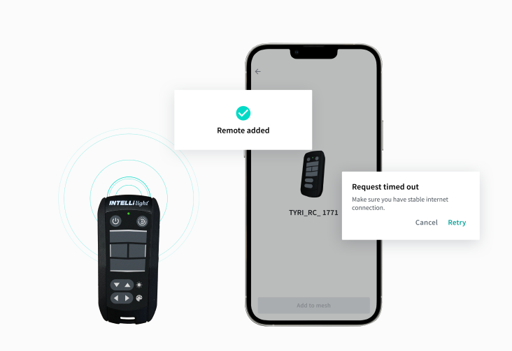 Both the Android and iOS app are built upon our own open source Bluetooth framework Beckon-Android making the interactions safe, correct and low energy. The apps allow adding, grouping and managing the mesh in a fault tolerant way. Changes are automatically synced to the cloud and mesh sharing is supported. The apps were developed from the start with the actual firmware, lights and remote ensuring the best possible performance.