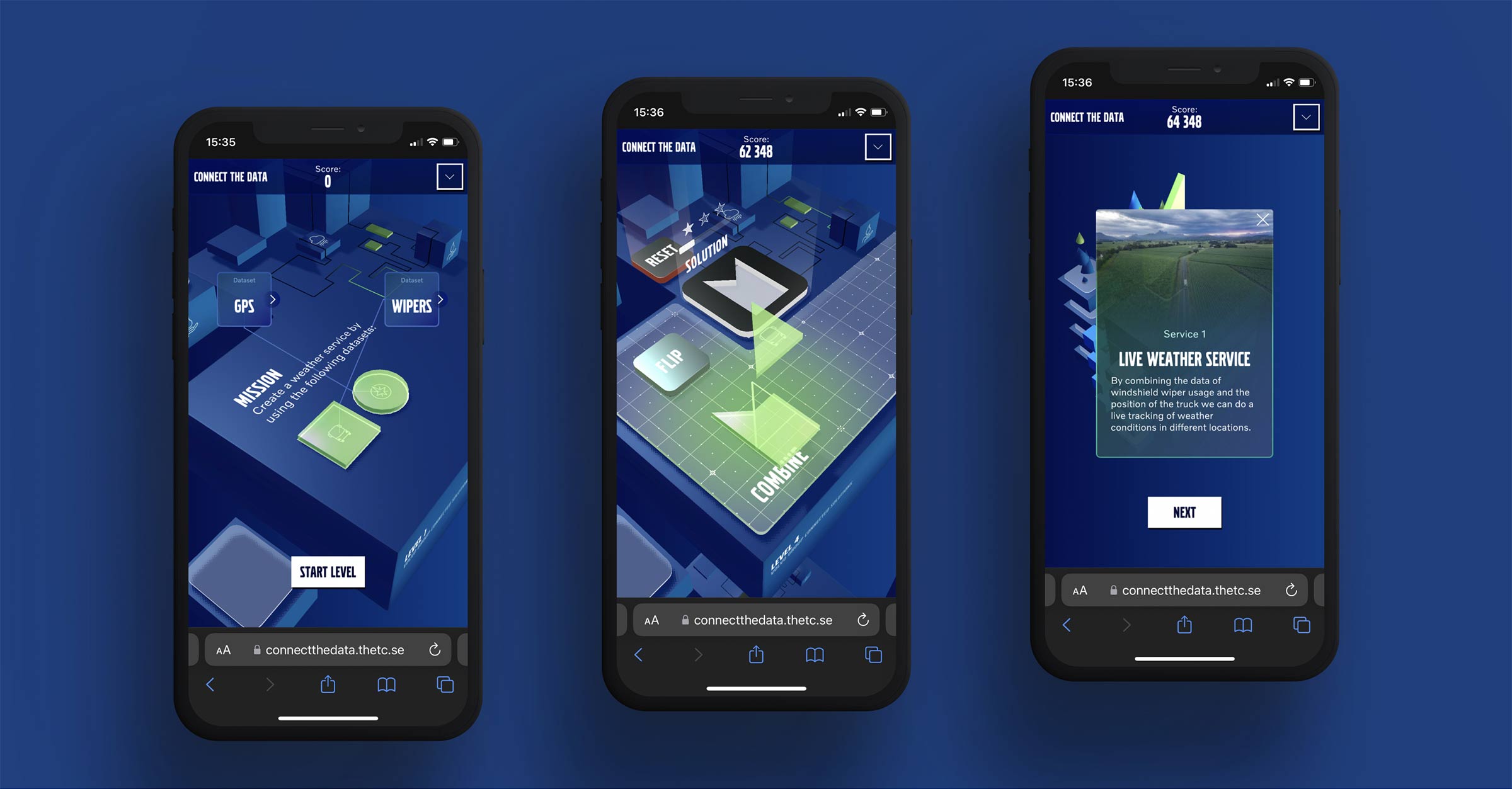 “Connect the data” is a web based single player game that tells a story about Volvo being more than the vehicles. Throughout the challenging puzzle game the user is taken on a journey that showcases what kind of data Volvo Group utilizes in their product development.