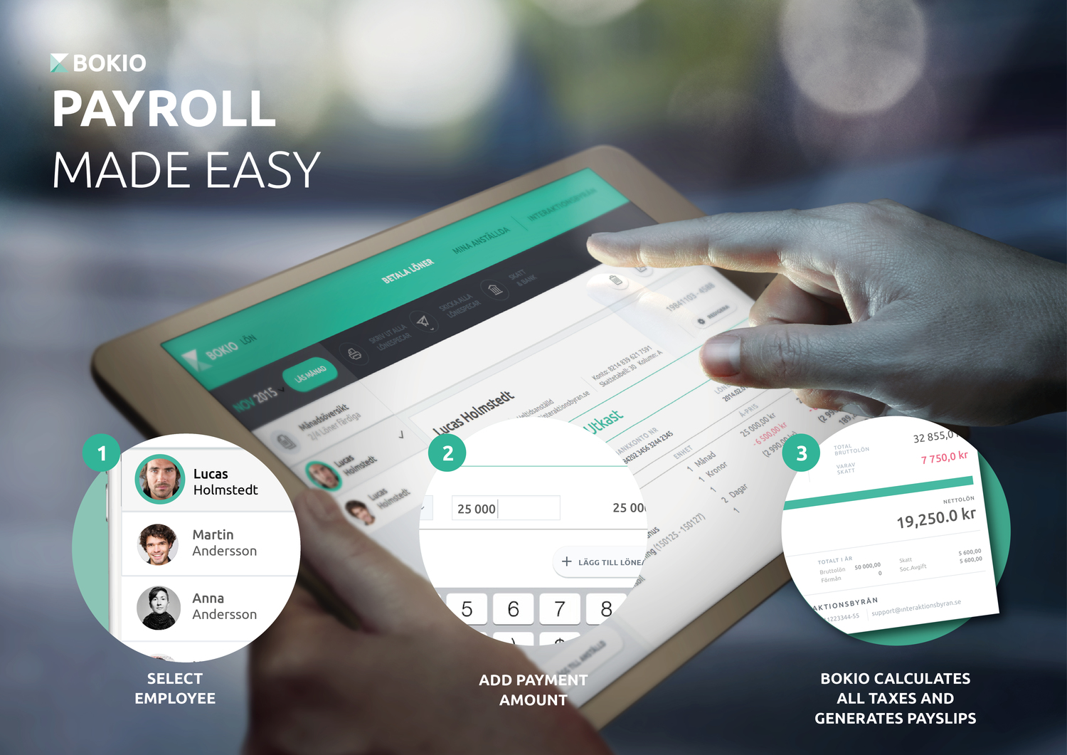 Bokio Salaries was funded in 2011 and four years later we joined forces with Mikael Eliasson, CTO, and Viktor Stensson, CEO and started Bokio as it looks today.