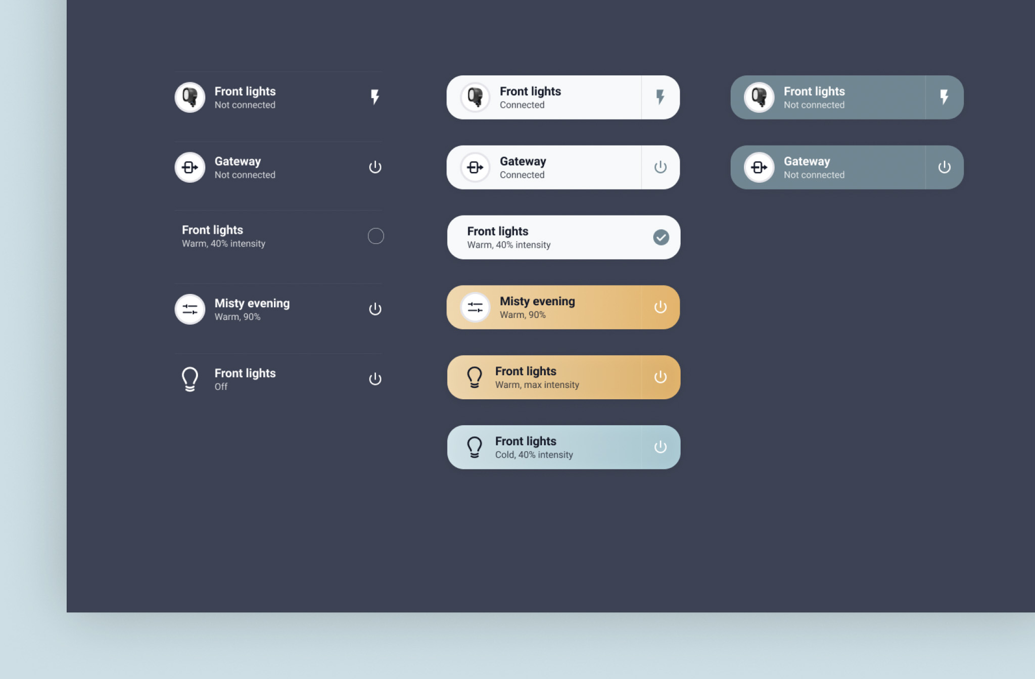 The minimal and straightforward user interface shows users all the control settings in a glance, to enable easy adjusting of color temperature and dimming of both lights and groups. The onboarding, setup and UX writing is guiding and straight to the point - less is more. In order to accelerate the development and build consistency through the app, a design system was built fbased on native Android components.