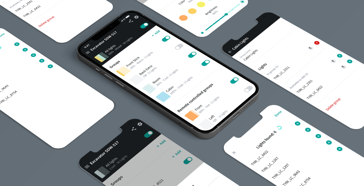Building useful products is close to our heart. That’s why we involved both operators and machine body builders early on in the process to understand the environment this app will live in. Through research, interviews and a tested prototype we gathered insights, experiences and data to iterate on the concept and design the MVP.Our goal was to build an app that liberates users in the flexibility of the setup and management of their own mesh, as well as ensuring that users can quickly change the lights to their needs and environment. To enhance safety, rather than be another distraction, the UX flow is self-explanatory, efficient and informative.